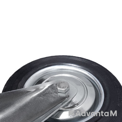 Неповоротное колесо с кронштейном и прочным ободом из оцинкованной стали. Шинка из чёрной литой резины хорошо поглощает вибрацию при движении. В оси надёжный роликовый подшипник. Диаметр колеса 75 мм, общая высота опоры – 95 мм. Для крепления предусмотрена платформа размером 75x60 мм. Максимальная грузоподъёмность – 50 кг.