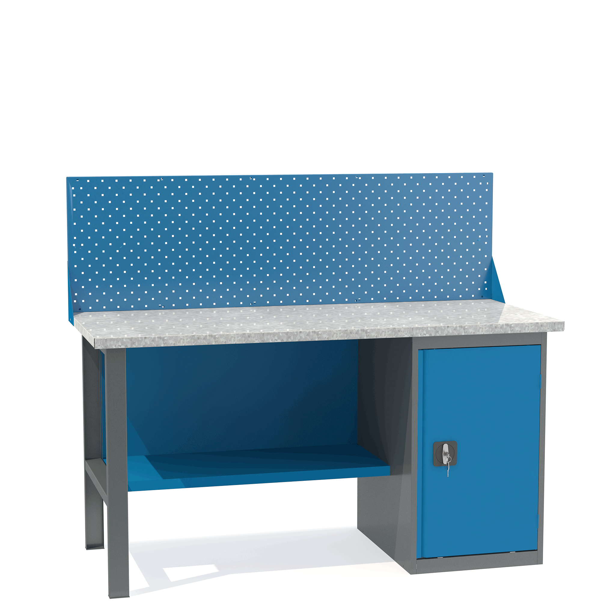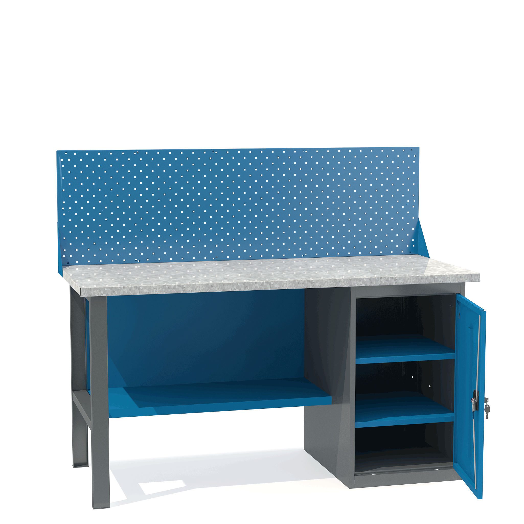- Верстак имеет надежную модульную конструкцию с усиленной столешницей (плита МДФ 25мм, покрытая листом оцинкованного металла).