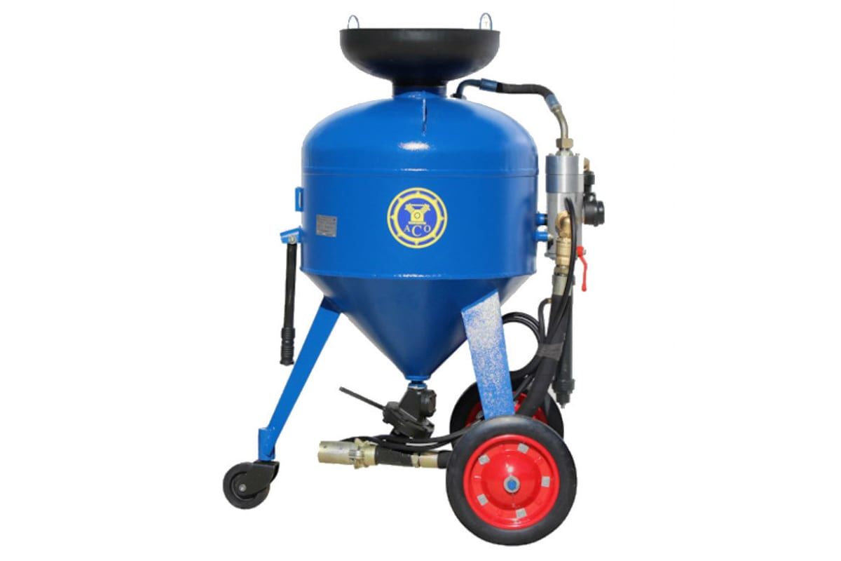 Аппарат струйной очистки данной модели особенный тем, что очистка идёт с помощью абразива (песка). А именно аппарат подаёт песок или другой абразивный материал (в зависимости от очищаемой поверхности) под высоким давлением. Такая струя песка прекрасно удаляет самые стойкие загрязнения.
