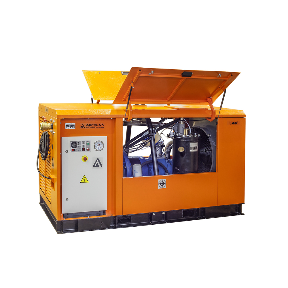 Электрические станции ЗИФ-СВЭ без кожуха могут быть полезны, когда размещение компрессора в производственном помещении по различным причинам невозможно или неудобно.