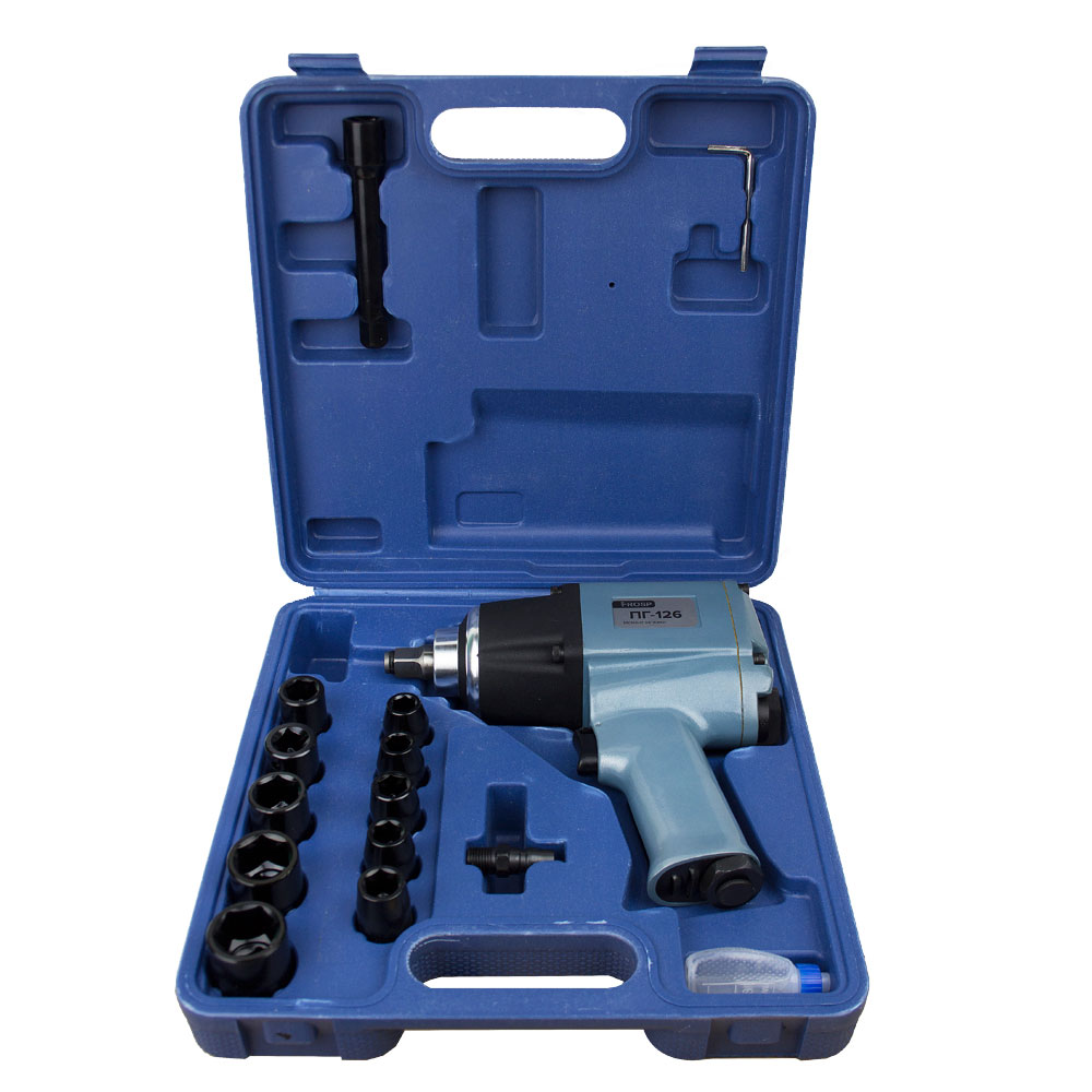 Гайковерт пневматический FROSP ПГ-126К — мощный инструмент с квадратом шпинделя 1/2 дюйма. Момент затяжки этой модели составляет 1200Нм, что значительно выше, чем у ближайших «собратьев». Благодаря этому показателю, он обладает большей мощностью, а вместе с тем — производительностью. Это повысило вес инструмента, который составляет 3,4 килограмма. Работает при давлении 6,3 бар. Поставляется пневмогайковерт в удобном кейсе, в комплекте с насадками различных размеров.